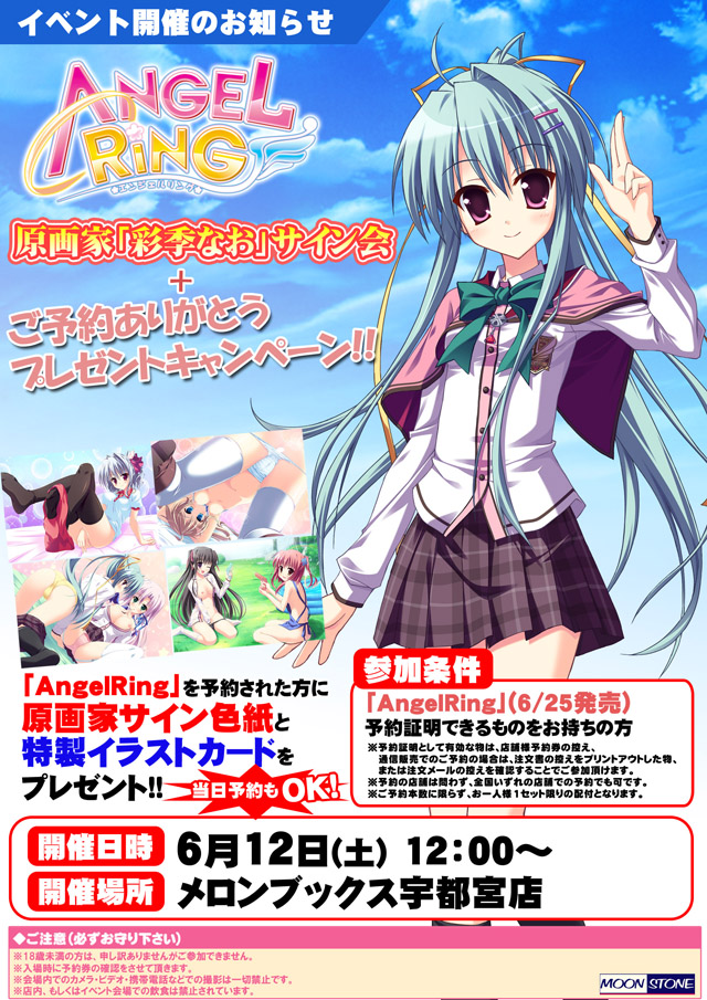 | 6月12日(土) | 17:00 | 横浜(神奈川) | ゲーマーズ横浜店 | サイン会・配布 | MOONSTONE単独イベント サイン会 彩季なお |