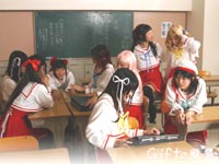 大勢のコスプレイヤーによる教室スタジオでの撮影や、