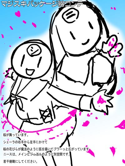| 3/20はお休みなので、木曜日ですが、更新します。 マジスキ通信、明日がお休みなので本日更新予定だったのですがまだの模様です。 毎回締め切りぶっちぎってデータを渡してる中、今回は珍しく締め切り通りだったのに(;-; ユーザーの皆様、ニコニコ担当様スミマセン・・・ あ、公開された! さて、パッケージ絵が上がりましたので、折角なので制作過程をかいつまんで 紹介したいと思います。