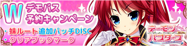 ※デーモンバスターズのみの予約で、妹ルート追加パッチDISCとクリアブックマークが貰えます。